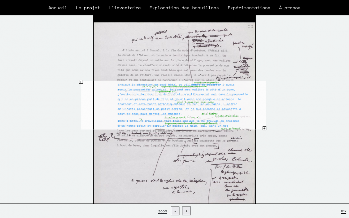 Expérimentations autour des modalités de la transcription d’un feuillet de La réticence, de Jean-Philippe Toussaint.