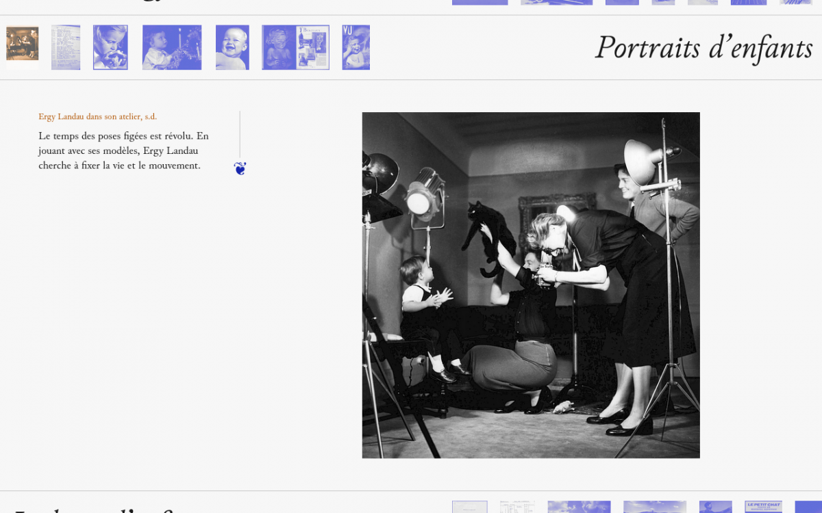 Design et développement du site web de l’exposition en ligne Ergy Landau à livres ouverts.